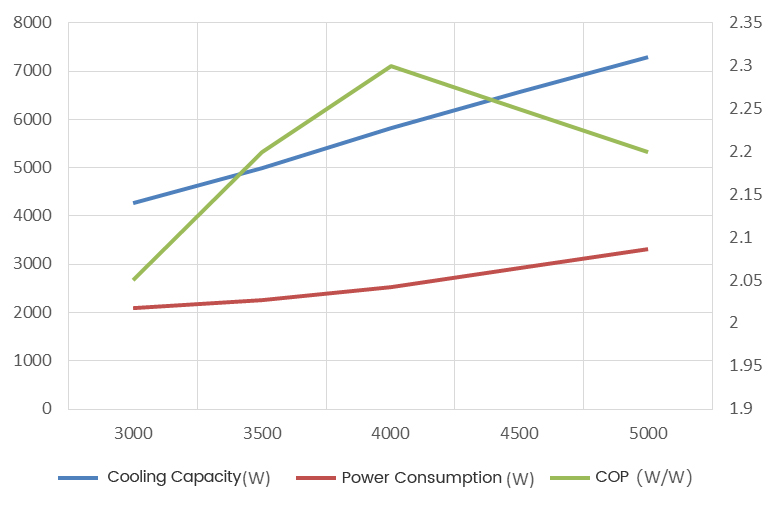 | 额定 冷却 容量 | 4270W(3000转) | 5830W(4000转) | 7290W(5000转) | 4270W(3000转) | 5830W(4000转) | 7290W(5000转) |